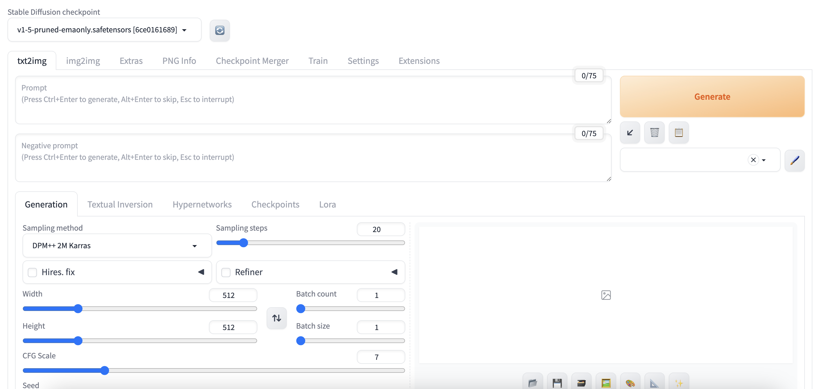 본인은 v1.5-pruned-emaonly.safetensors 를 설치했는데, 이전 글에서도 말했지만 성능은 그닥 좋지 않음