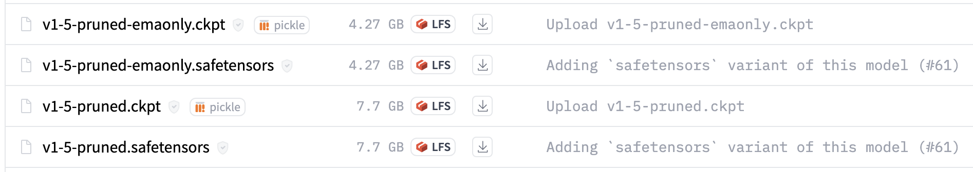 다운로드 링크: https://huggingface.co/runwayml/stable-diffusion-v1-5/tree/main