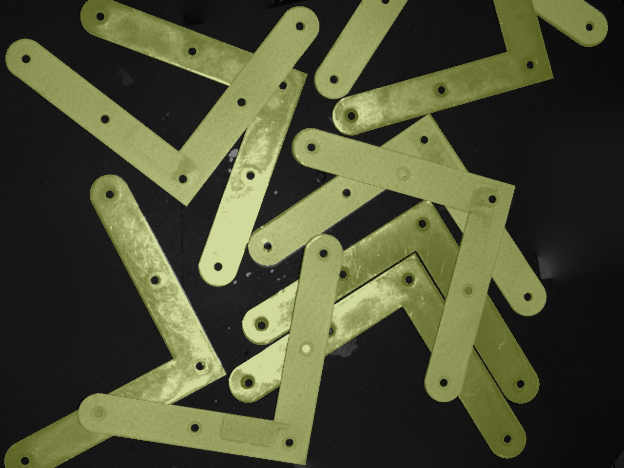 산업용 부품들이 bin 안에 무작위로 쌓인 상태