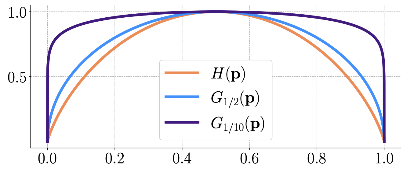 $G_\gamma(\mathbf{p})=\sum_j p_j^\gamma\left(1-p_j\right)^\gamma,\, \gamma \in (0,1)$