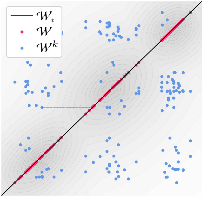 따라서 $\mathcal{W}_*^k$ 로 하여금 $\mathcal{W}_*$ 와 가까워지게 학습